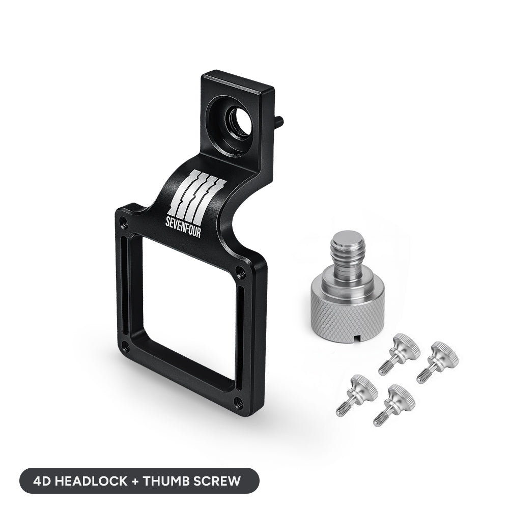 While the SEVENFOUR 4D Headlock is designed to provide additional stability for larger lens setups, we do not recommend exceeding a lens weight of 1kg. Exceeding this limit may place undue stress on the DJI Ronin 4D’s lens mount bayonet, potentially resulting in damage to the camera body. Use with heavier lenses is at the operator’s discretion and risk.